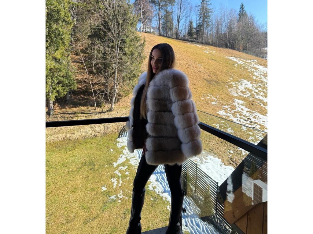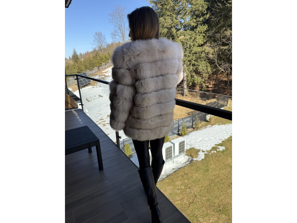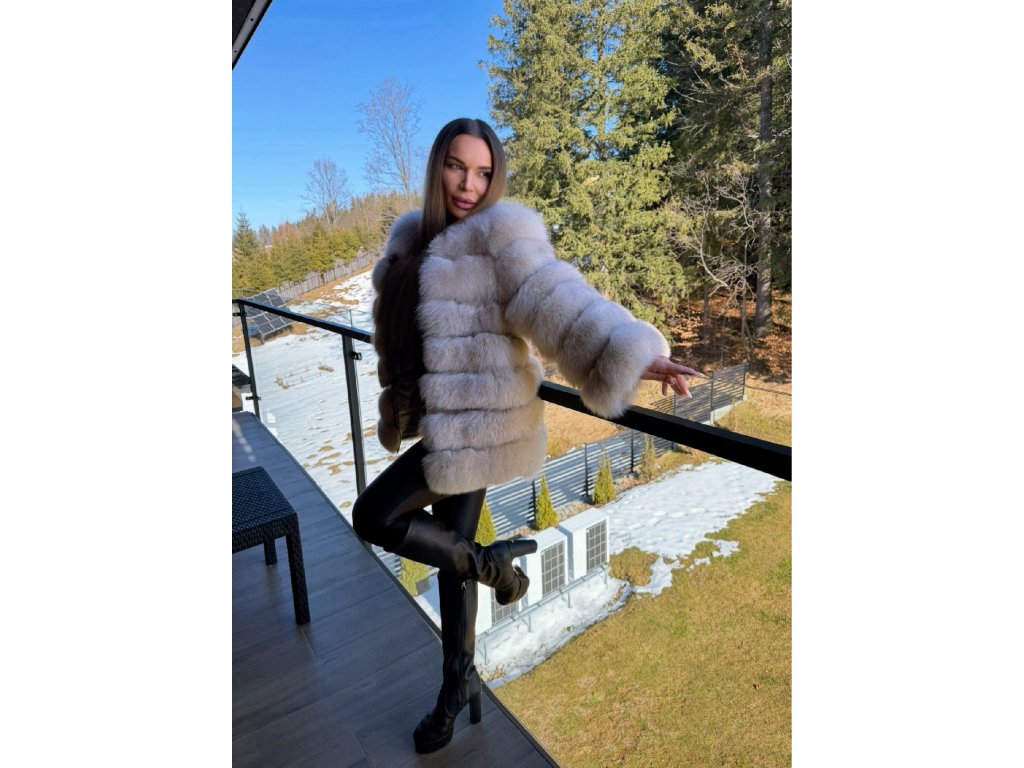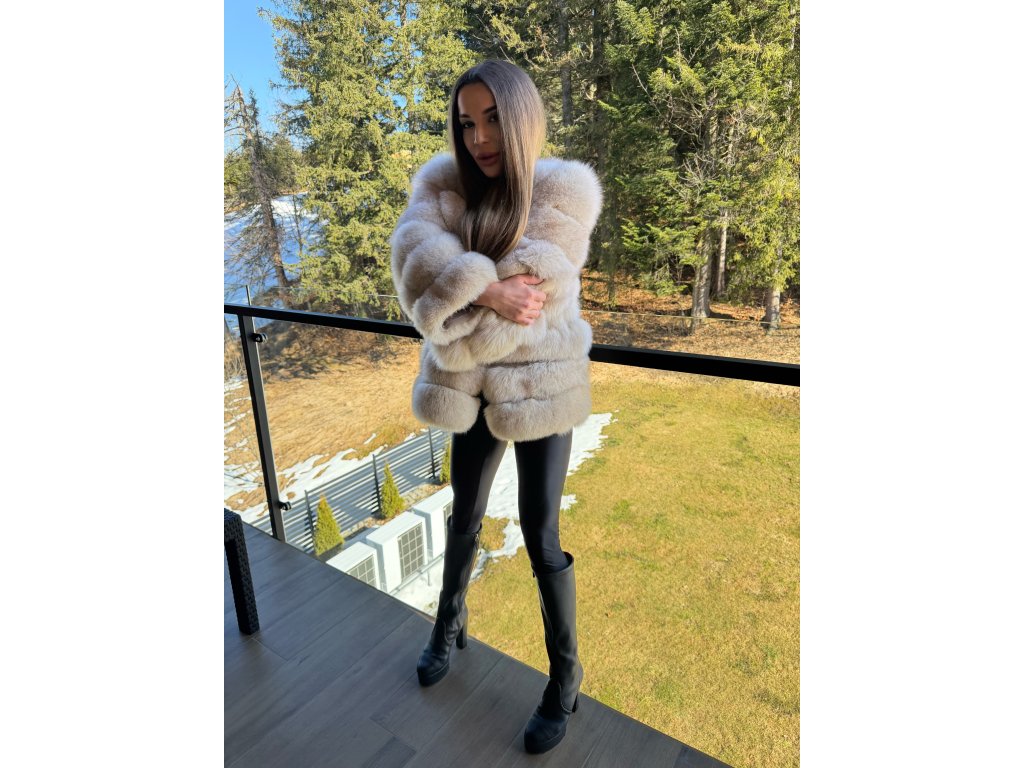 Kožuch z líšky (FOX FUR) v extra hustote, v nadčasovej jemnej a ľahko kombinovateľnej farbe "LIGHT BEIGE", ktorá je už niekoľkým rokom po sebe veľmi obľúbenou.