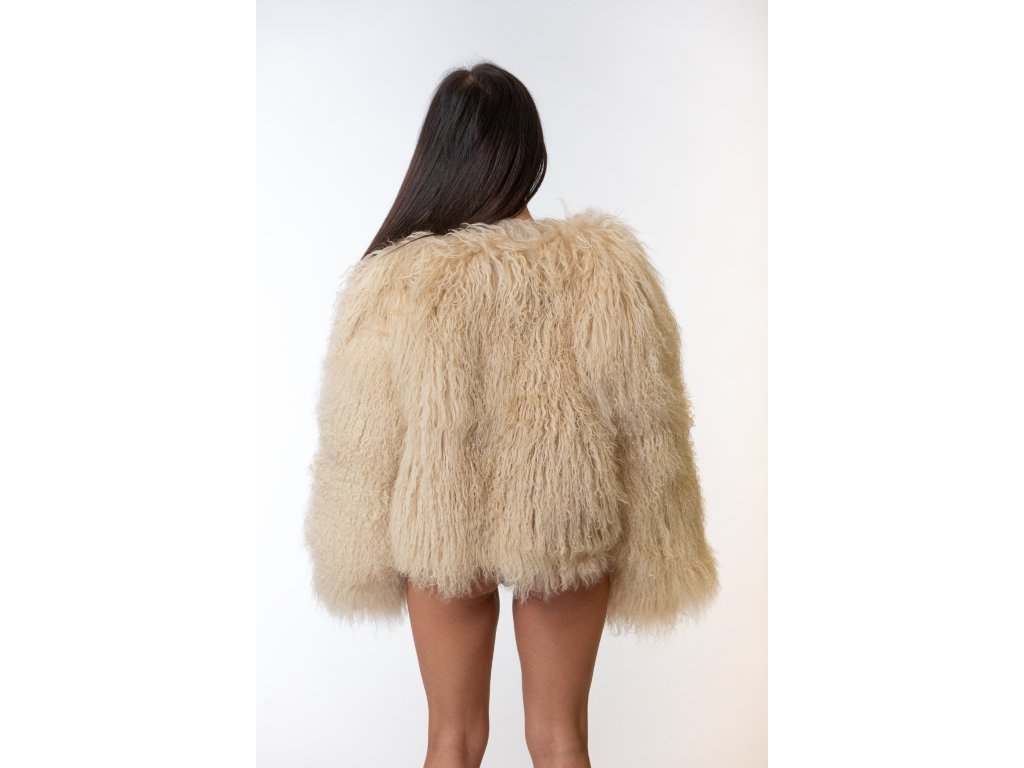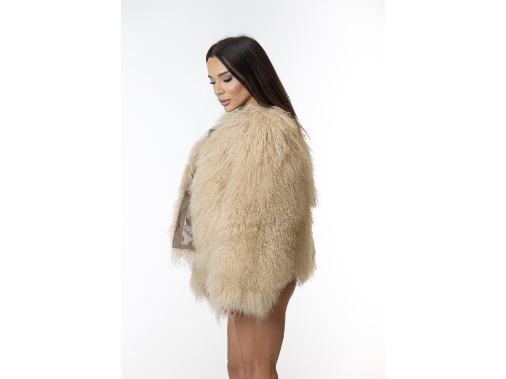 Modelka na foto má na sebe kožuch s dĺžkou 50cm, rukávy 60cm, obvod 90cm.