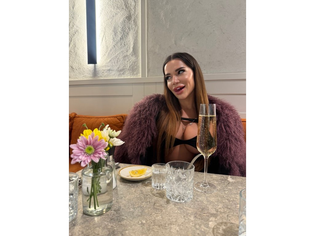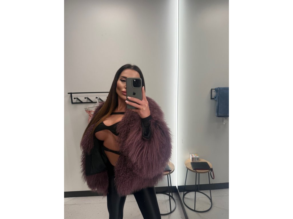 Modelka na foto má na sebe kožuch s dĺžkou 50cm, rukávy 60cm, obvod 90cm.